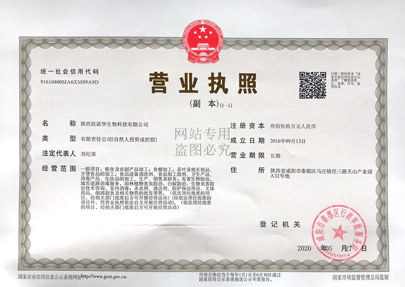 陜西欣諾華生物科技有限公司營(yíng)業(yè)執(zhí)照