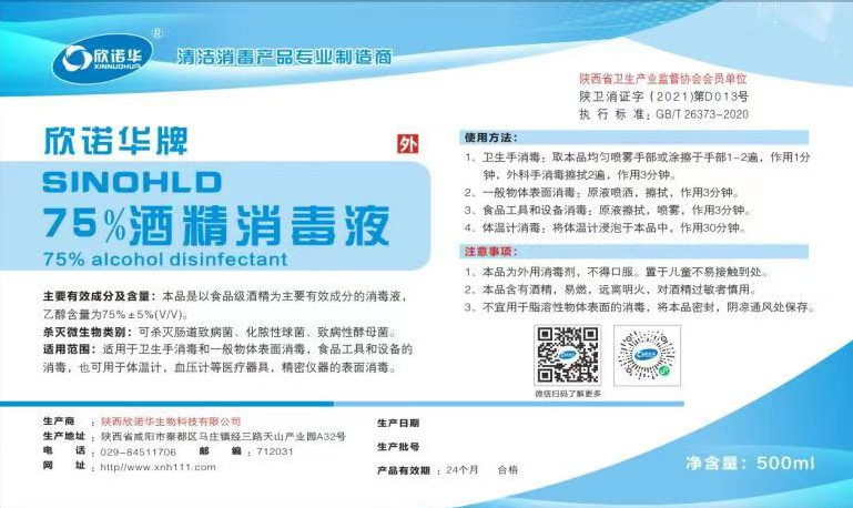 產(chǎn)品名稱: 欣諾華牌75%酒精消毒液 商標(biāo):欣諾華