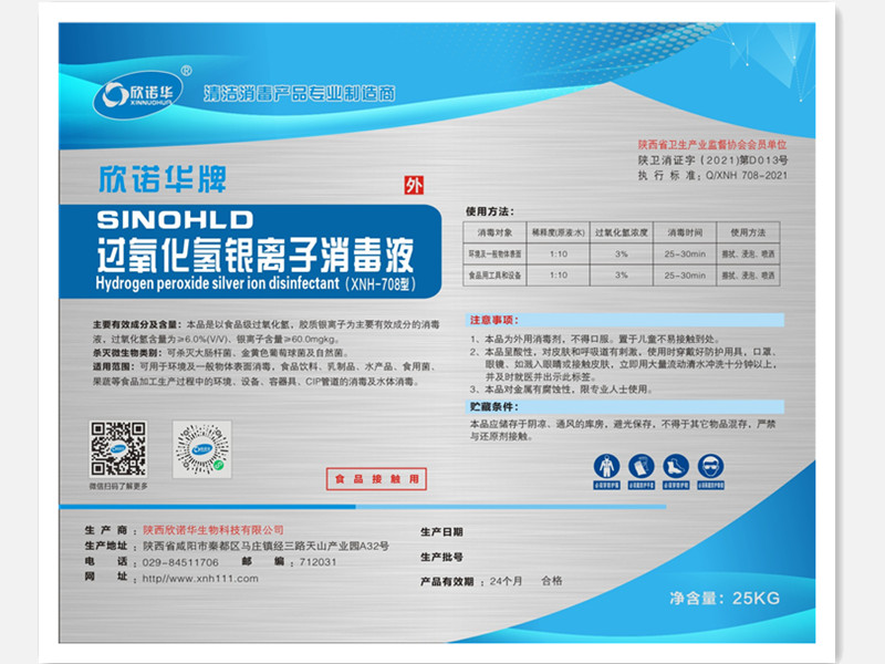 主要成分及含量: 本品是以過氧化氫、銀離子為主要有效成分的消毒液,產(chǎn)品分為過氧化氫含量≥35.0%;銀離子含量≥350mg/kg過氧化氫含量≥6.0%;銀離子含量≥60mg/kg兩種,??蓺缒c道致病菌、化膿性球菌。 使用范圍: 適用于環(huán)境及一般物體表面消毒;食品加工工具及設(shè)備消毒;食品飲料,乳制品,肉類,水產(chǎn)品,食用菌,果蔬,制藥廠,日化廠等加工生產(chǎn)過程中的環(huán)境,設(shè)備,容器具,CIP管道的消毒及水體消毒。也可以用于過氧化氫消毒機(jī)配套消毒液直接使用。 欣諾華牌過氧化氫銀離子消毒液是多組分復(fù)合殺菌劑,使用的氧化劑為食品級(jí)過氧化氫,膠質(zhì)銀離子,穩(wěn)定劑經(jīng)科學(xué)配比而成的復(fù)合消毒液,利用過氧化氫的活性和銀離子銀離子持久抑菌的效用。互相增效促進(jìn)起到高效的殺菌與消毒作用, 本品經(jīng)第三方檢測(cè)后證實(shí),產(chǎn)品具有無色無味澄清透明的液體。欣諾華牌過氧化氫銀離子消毒液沒有產(chǎn)生任何消毒副產(chǎn)物或其它有毒物質(zhì),其作用后完全分解為氧氣和水。 |