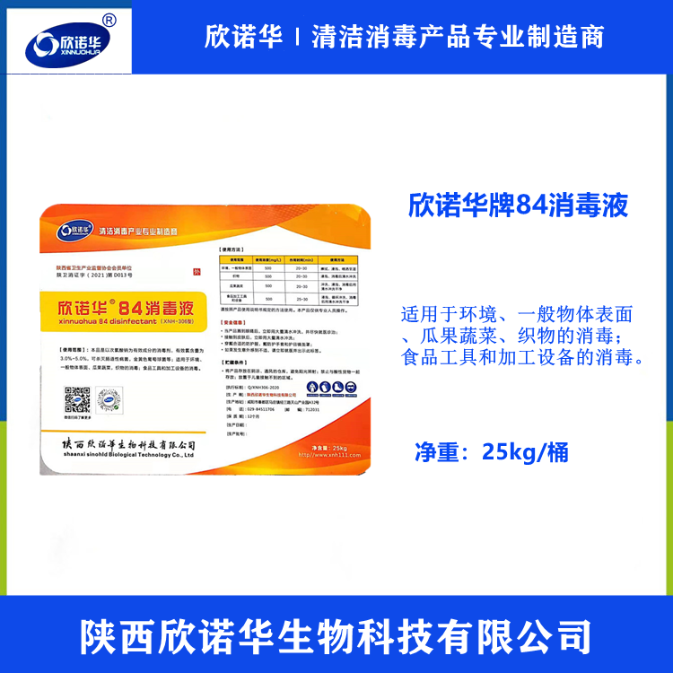 欣諾華牌84消毒液是一種無色或淡黃色的液體,是一種有效氯含量5.5~6.5%的高效消毒劑。被廣泛用于賓館、旅游、醫(yī)院、食品加工行業(yè)、家庭、幼兒園等的衛(wèi)生消毒,消毒方法:擦拭,噴灑,拖洗、浸泡消毒。