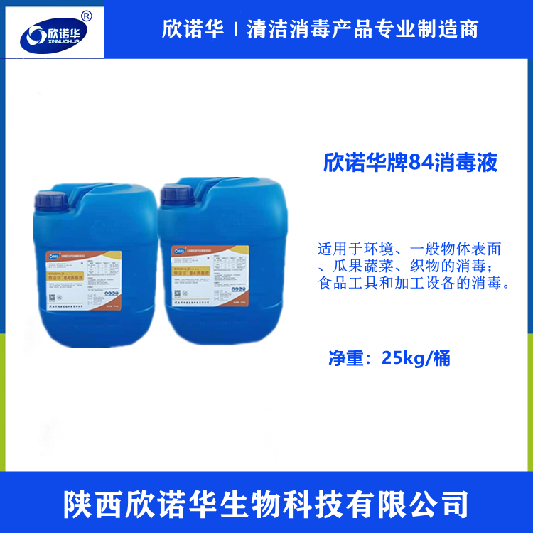 欣諾華牌84消毒液是一種無(wú)色或淡黃色的液體,是一種有效氯含量5.5~6.5%的高效消毒劑。被廣泛用于賓館、旅游、醫(yī)院、食品加工行業(yè)、家庭、幼兒園等的衛(wèi)生消毒,消毒方法:擦拭,噴灑,拖洗、浸泡消毒。
