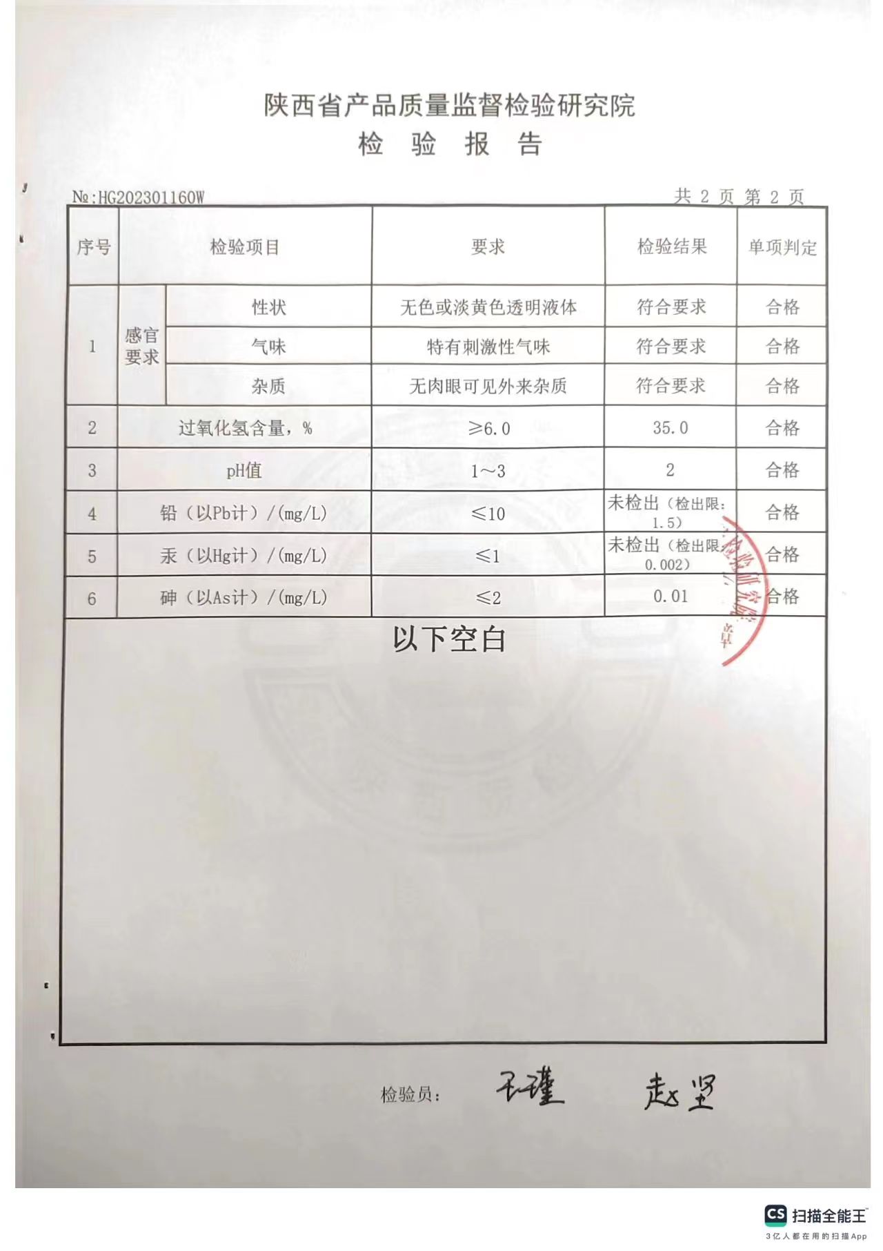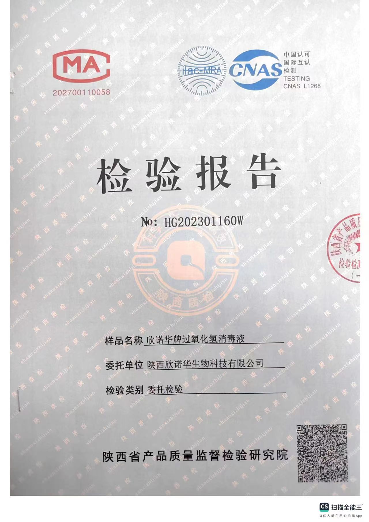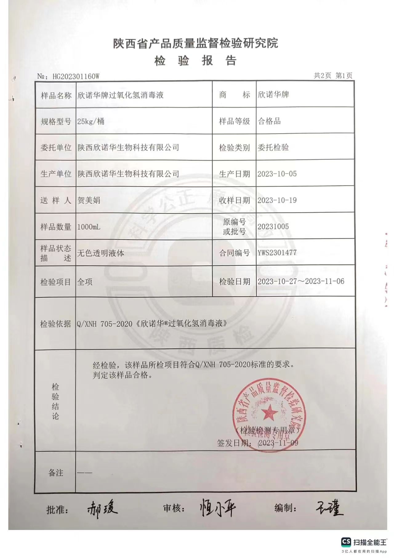 欣諾華牌過氧化氫消毒液(食品級雙氧水)檢測報(bào)告(2023年度)-陜西欣諾華生物科技有限公司